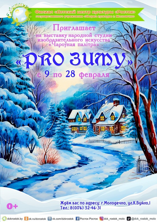 Детский центр культуры "Росток" приглашает с 9 по 28 февраля на выставку "PRO Зиму" народной студии изобразительного искусства "Чароўная палітра".
