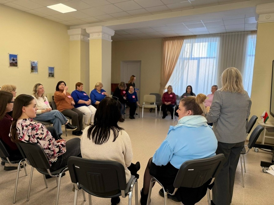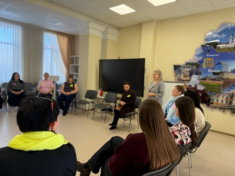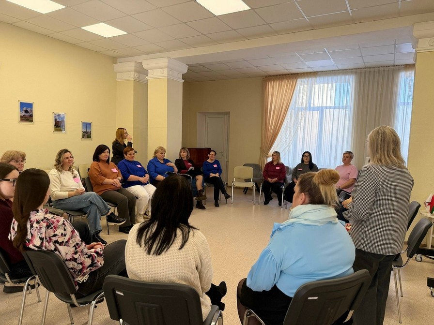 11.03.202610 марта представители первичной организации РОО «Белая Русь» детского центра культуры «Росток» Татьяна Крышталь и Полина Чаевская приняли участие в психологическом тренинге «Фундамент: работа с текущим стрессом и восстановление контакта с собой» из цикла «Ресурсная женщина» в рамках реализации плана мероприятий к Году белорусской женщины.